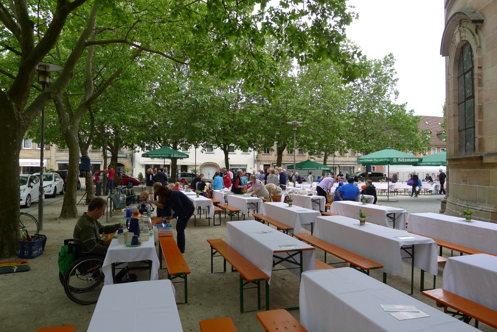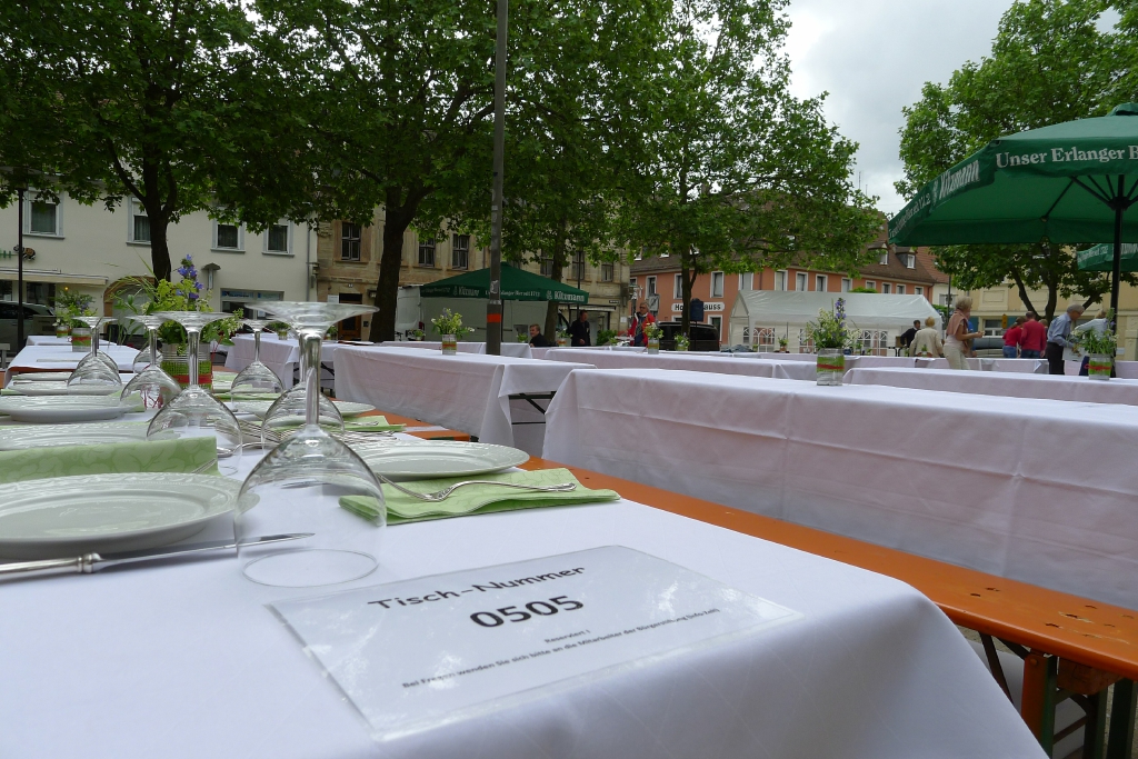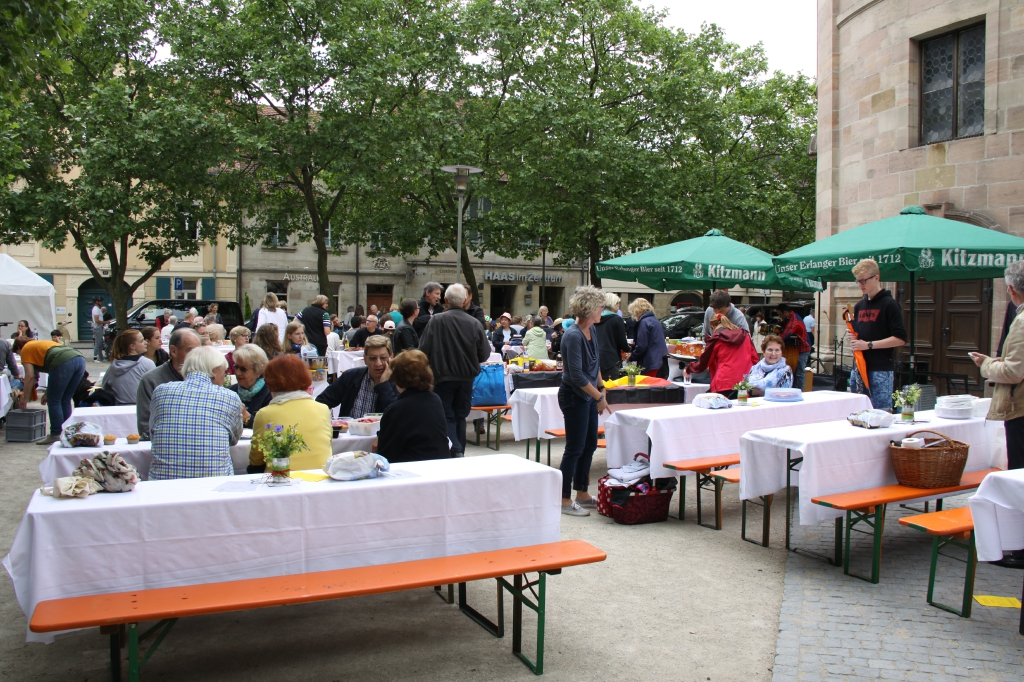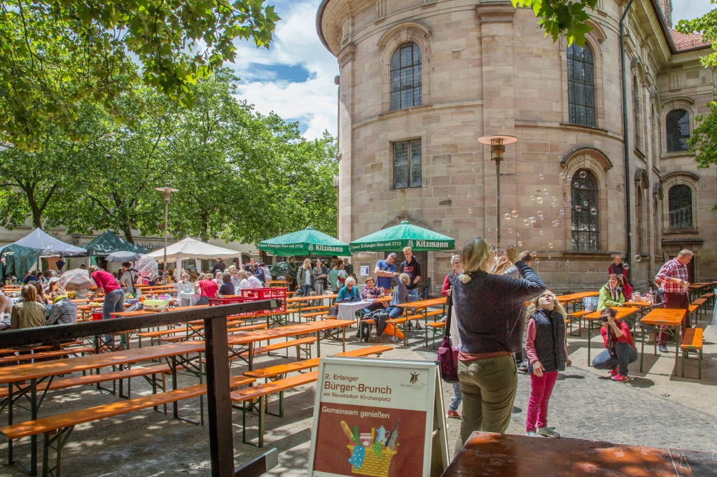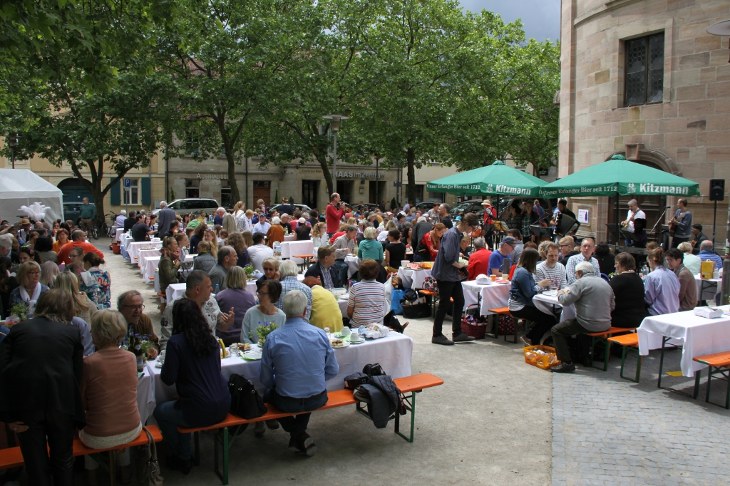 Gemäß dem Motto „Bei schönem Wetter feiern kann jeder“ haben sich, trotz mäßiger Wetterprognose, dieses Jahr erneut ca. 700 Bürger zum entspannten Genießen beim „2. Erlanger Bürger-Brunch“ eingefunden.