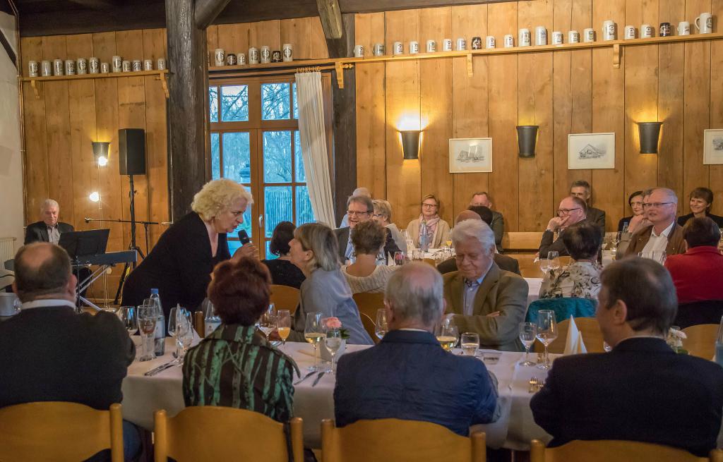 Fröhlich in den Frühling ging es bei der Bürgerstiftung Erlangen Ende März. Waren doch ihre Stifter und Unterstützer zu einem Benefiz-Kabarett in den Kosbacher Stadl eingeladen. Claudia Bill, die zugereiste Kabarettistin und Preußin aus Effeltrich bot, begleitet und unterstützt von ihrem Ehemann Uli, Heiteres und Nachdenkliches aus ihrem aktuellen Programm „Rettung naht – Bill weiß Rat“ und löste mit ihren manchmal kaum glaubhaften Geschichten und Erlebnissen aus dem ganz normalen Alltag Lachstürme aus. Der Kosbacher Sterne-Koch Hans Polster, bei der Bürgerstiftung schon 2003 als Gründungsstifter ein Mann der ersten Stunde, verwöhnte mit seiner Mannschaft die Gäste mit erlesenen Spezialitäten aus Küche und Keller.