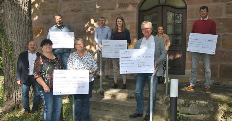 Vertreter von Siemens Healthineers übergaben am 01. Oktober 2021 in den Räumen des Vereins „Der Puckenhof“ in Erlangen eine Spendensumme von 20.000 Euro an fünf soziale Einrichtungen. Der Betrag kam durch eine Mitmach-Aktion im Juli zusammen. Unter dem Motto „Gemeinsam etwas bewegen“ beteiligten sich über 980 Mitarbeiter aus Forchheim, Erlangen, Kemnath und Rudolstadt an einem virtuellen Spendenlauf. Hierzu liefen sie einzeln oder in Gruppen durchschnittlich eine Strecke von 6,3 Kilometern. Für jeden Teilnehmer spendete das Unternehmen ein Geldbetrag und rundete diesen dann nochmal auf. Der Lauf „Run4Healthineers“ fand bereits zum zweiten Mal statt.