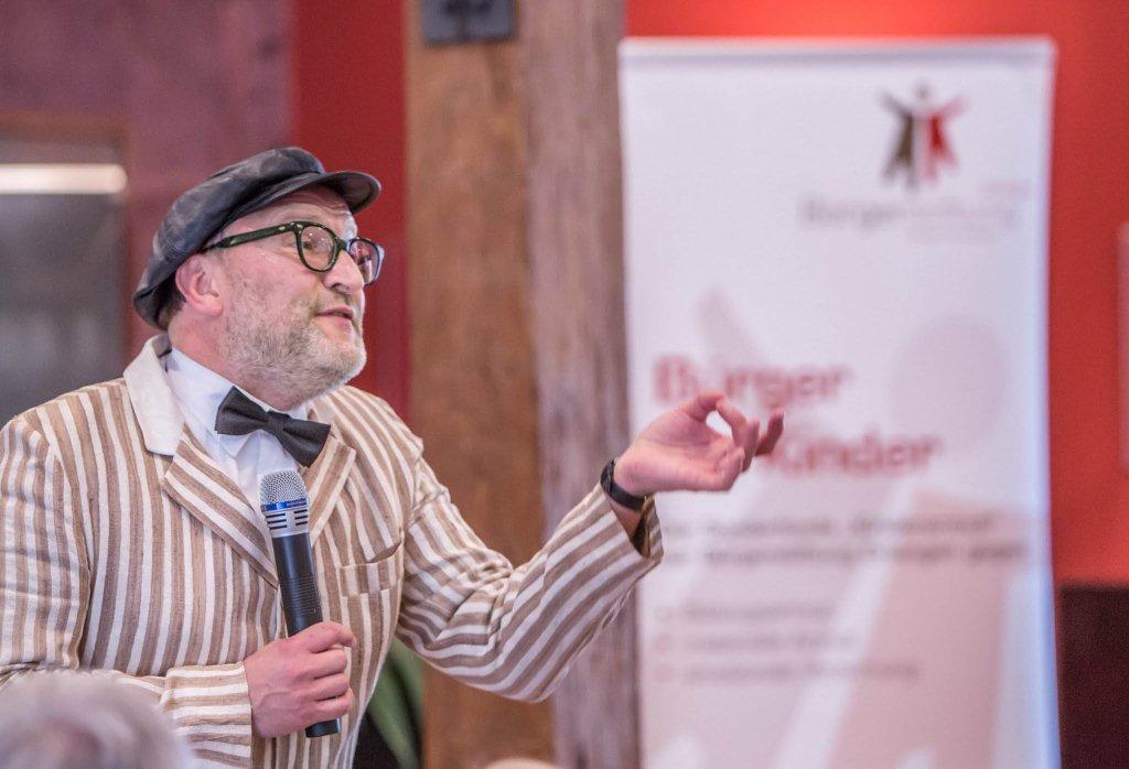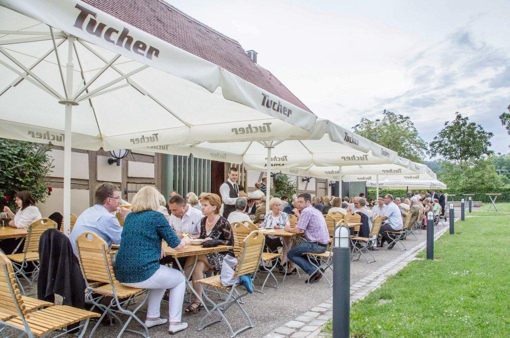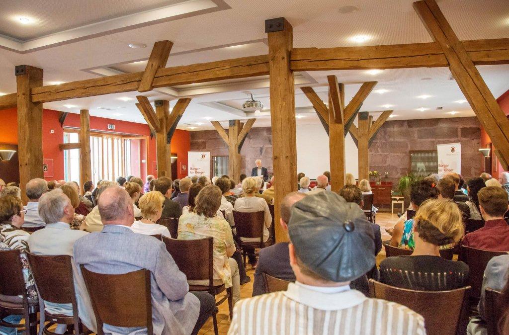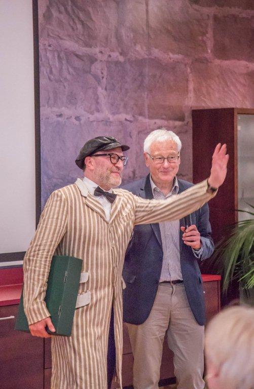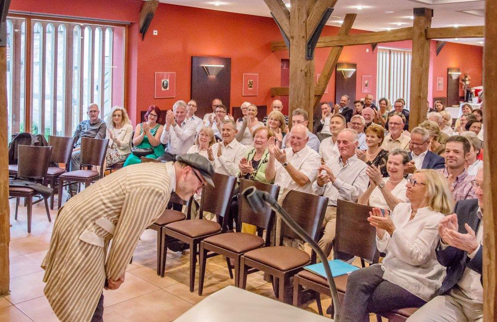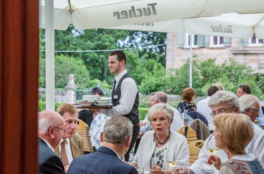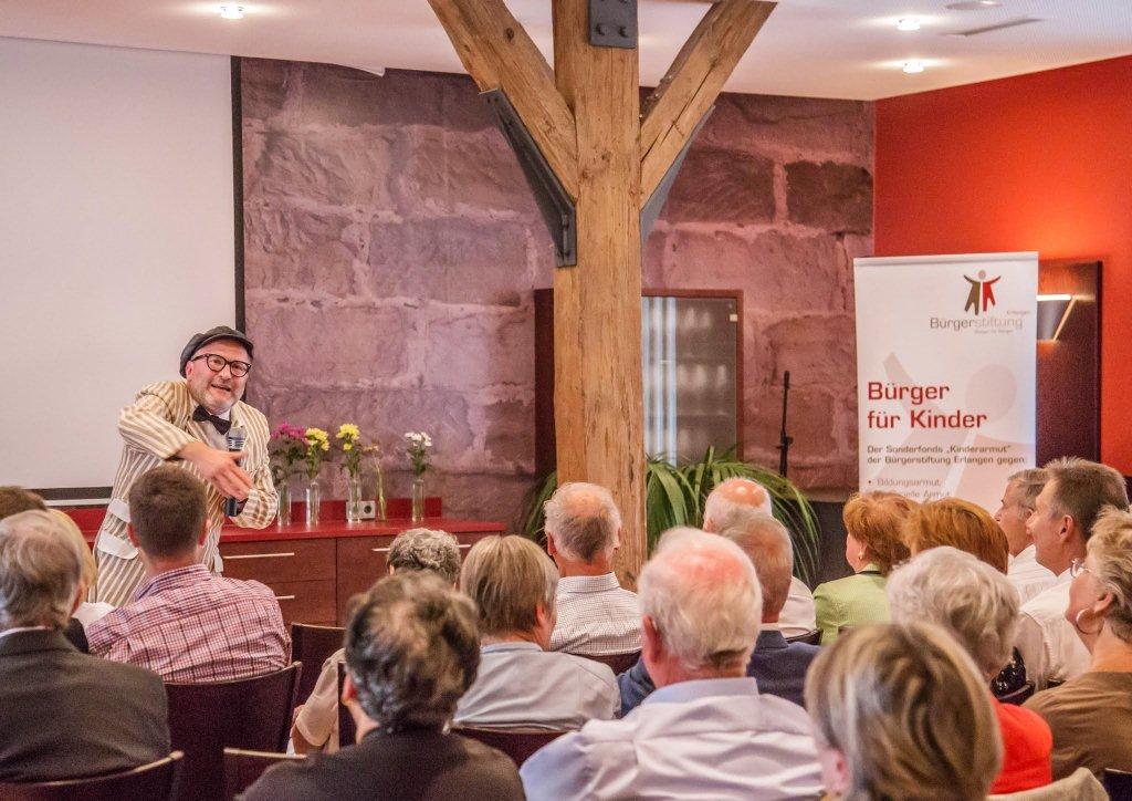 Als Dankeschön für Stifter, Spender und Unterstützer der Bürgerstiftung Erlangen war das 1. Benefiz-Kabarett der Stiftung auf Schloss Atzelsberg angesagt, und keiner, der der Einladung folgte, hat es bereut: Während der „Wortakrobat und Lachverständige“ Oliver Tissot mit maßgeschneiderten intellektuellen Schmankerl begeisterte, ließ der Gastgeber und Schlossherr Norbert Nägel das Beste aus Küche und Keller auffahren, um den zahlreichen Gästen den Abend auch zu einem kulinarischen Genuss werden zu lassen. Sogar das Wetter spielte mit, der Starkregen setzte erst ein, als der letzte Gast widerstrebend das herrliche Schlossareal verlassen hatte.